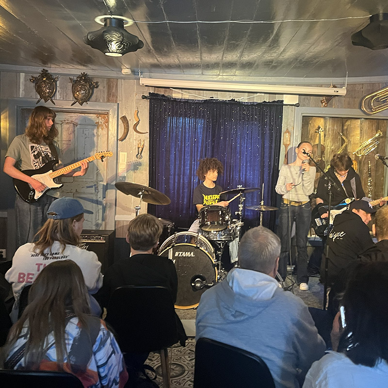 Øvingsfellesskapet «Huset» inviterer til gratis-konsert i Mathesongården. Denne dagen blir det amatørmønstring for unge band, og Overskuddsfabrikken gir 5000 kr i premie til vinneren, som kåres av en jury. «Huset» har 13 øvingsrom, alle utstyrt med sanganlegg for øving. Her er alle velkomne, uansett sjanger og alder. Det er absolutt lov til å Vippse et bidrag til driften.